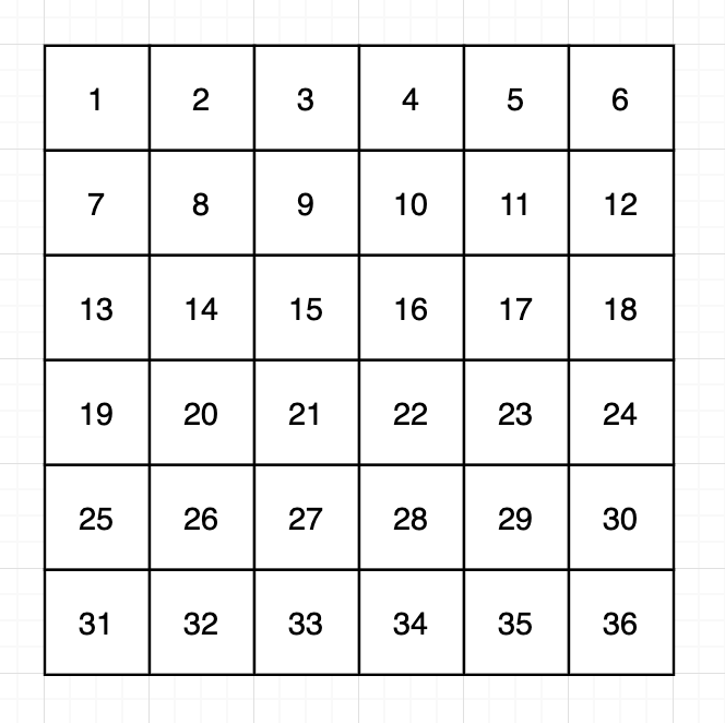 - 처음에 행렬에는 가로 방향으로 숫자가 1부터 하나씩 증가하면서 적혀있습니다.
